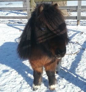 Ryker is a 32 inch tall bay miniature paint gelding. Very sweet but shy. Perfect for ground work and exercises that works on trust. The hair diva of the minis, he has tons of hair. He also participates in the Oktoberfest parade. He started at Reins in 2015 and is owned by Reins
