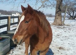 Dalton is a 15.1 HH blood bay gelding Foundation Quarter Horse who has been there done that. He is laid back, and will do anything asked of him. He is great for teaching trust. He is the King of the herd. He started at Reins in 2013 and is owned by Barbara Phelps
