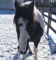 Lil Joe is a 14.3 HH black/white gelding Paint. He loves to play! He is also known as the class clown. Originally a rescue and blind in right eye. He loves people! He started at Reins in 2008 and is owned by Reins